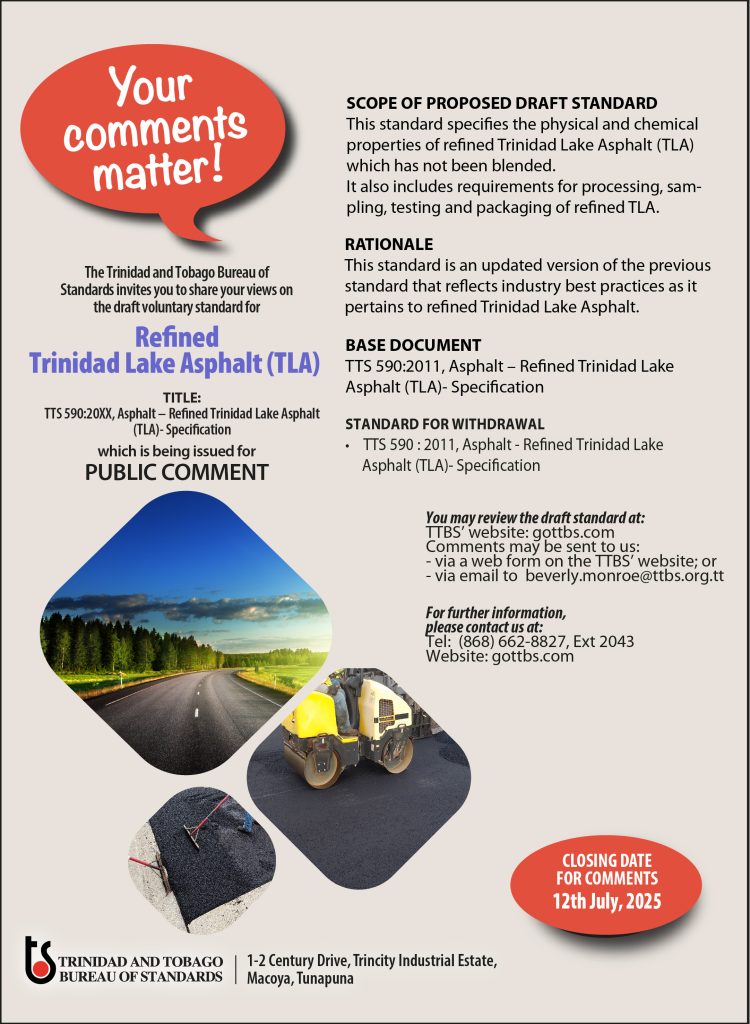 The Trinidad and Tobago Bureau of Standards has issued the following draft voluntary standard for Public Comment.