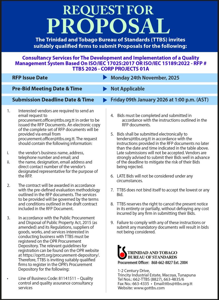 RFQ: Development and Implementation of a Quality Management SystemPosted by admin Date November 24, 2025 Category Tenders