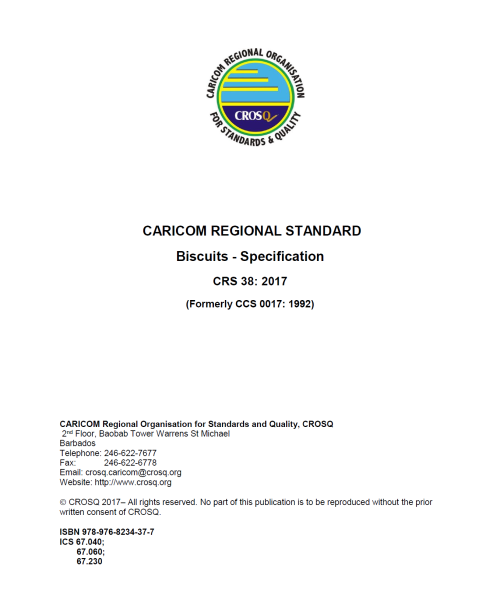 CRS 38: 2017 Biscuits – Specification (Formerly CCS 0017: 1992)